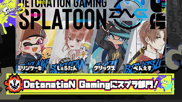 【速報】DetonatioN Gamingにスプラトゥーン3部門設立!「ミリンケーキ」「しぇるたん」「クリックス」「べんえす」若手強豪プロチーム結成!