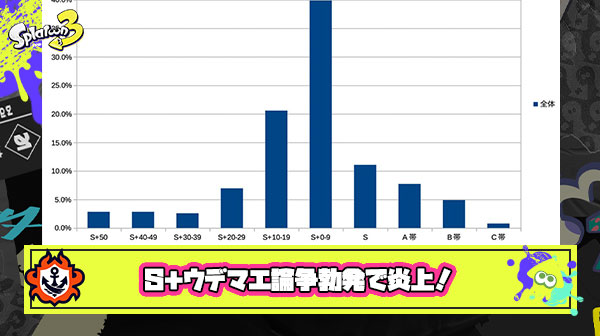 【炎上】S+ウデマエ論争勃発!40代おっさんイカ「スプラ2勢ウデマエでマウント取るな」の主張にブキ研「それは誤解だ」とデータを提示