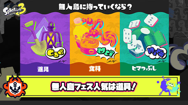 【スプラトゥーン3】無人島フェス人気は断トツ「道具」か 前夜祭のパターンなら2番「食料」狙いが勝利に近い?! みんなの予想・反応まとめ!