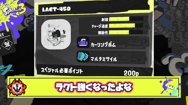 ラクト本当に強くなったよな。トラストには申し訳ないけど弓系では間違いなく最強ブキ